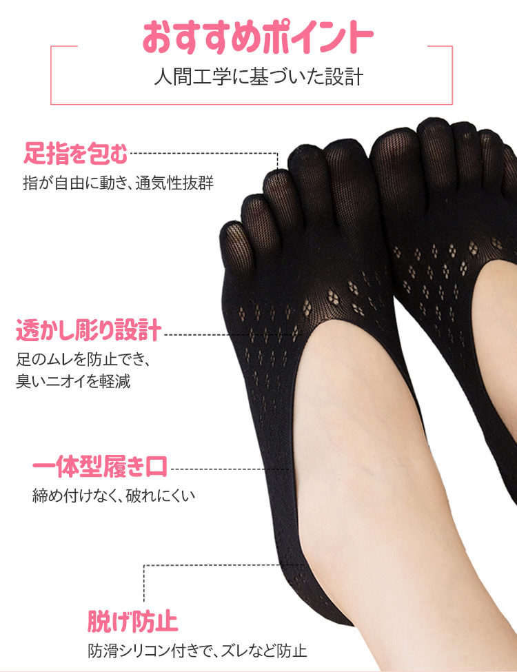 【5本指靴下】足底のストレスを軽減し、姿勢を矯正、防滑 快適 通気 薄手 爽やか