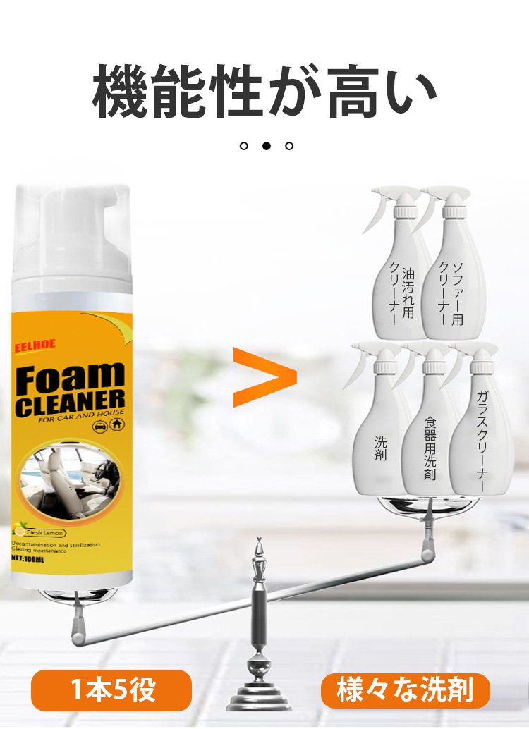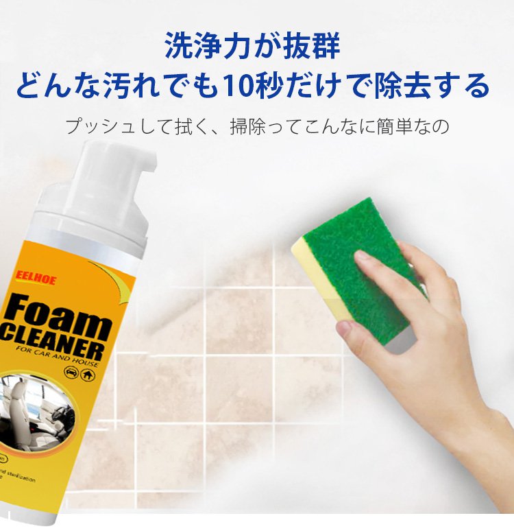 【多機能泡タイプクリーナー】【車用/家庭用】強力な洗浄力、汚れを溶解する、安心安全、汚れをしっかり吸着する
